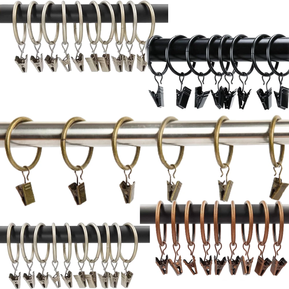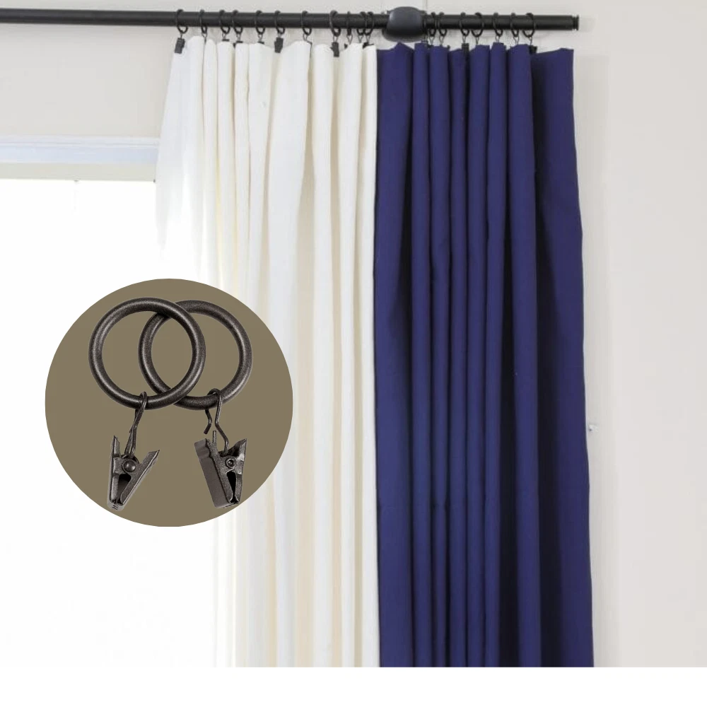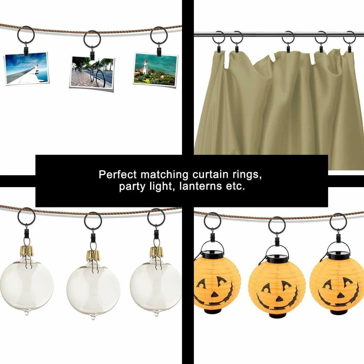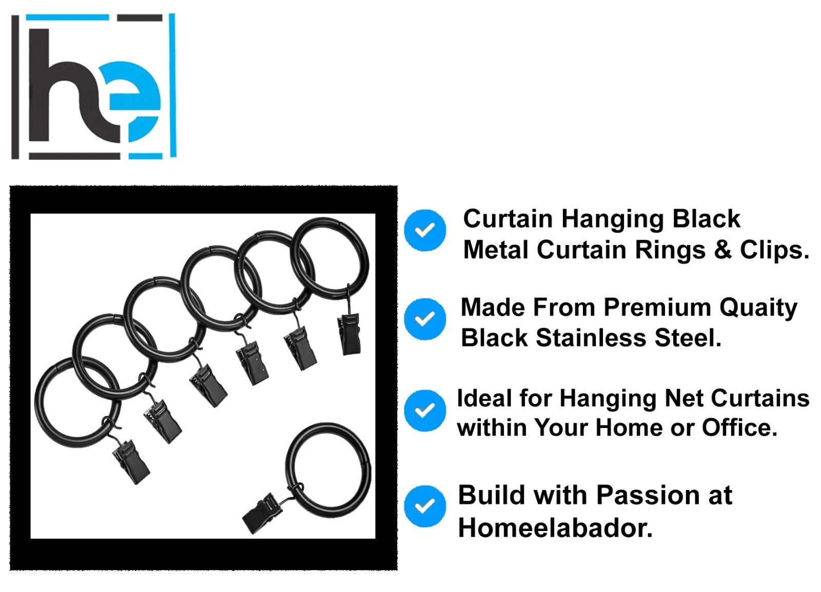 Multi Pack Size 45mm BLACK Colour Strong Metal Curtain Rings Hook with Eyes Rod Pole.