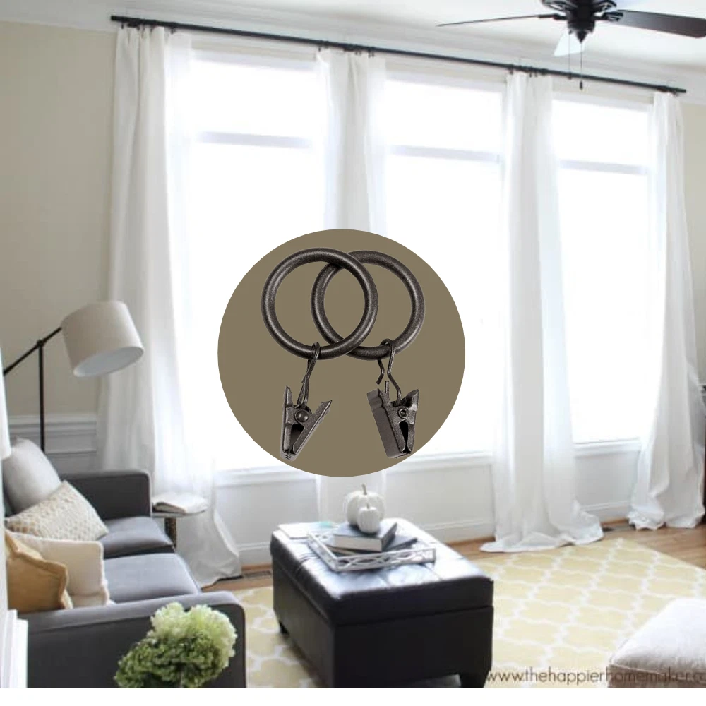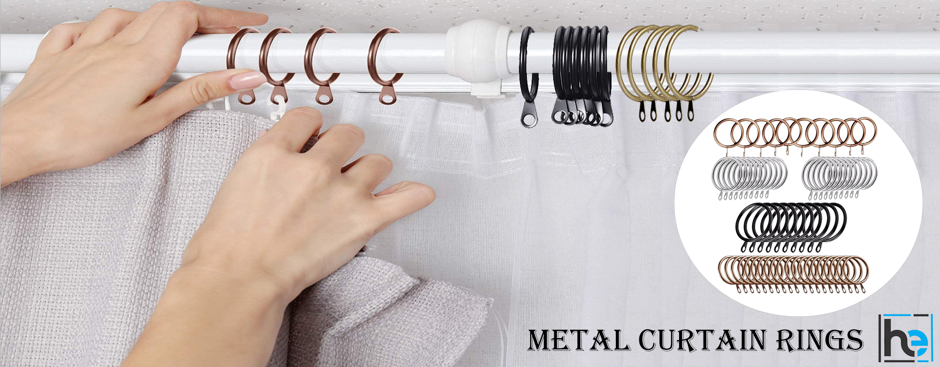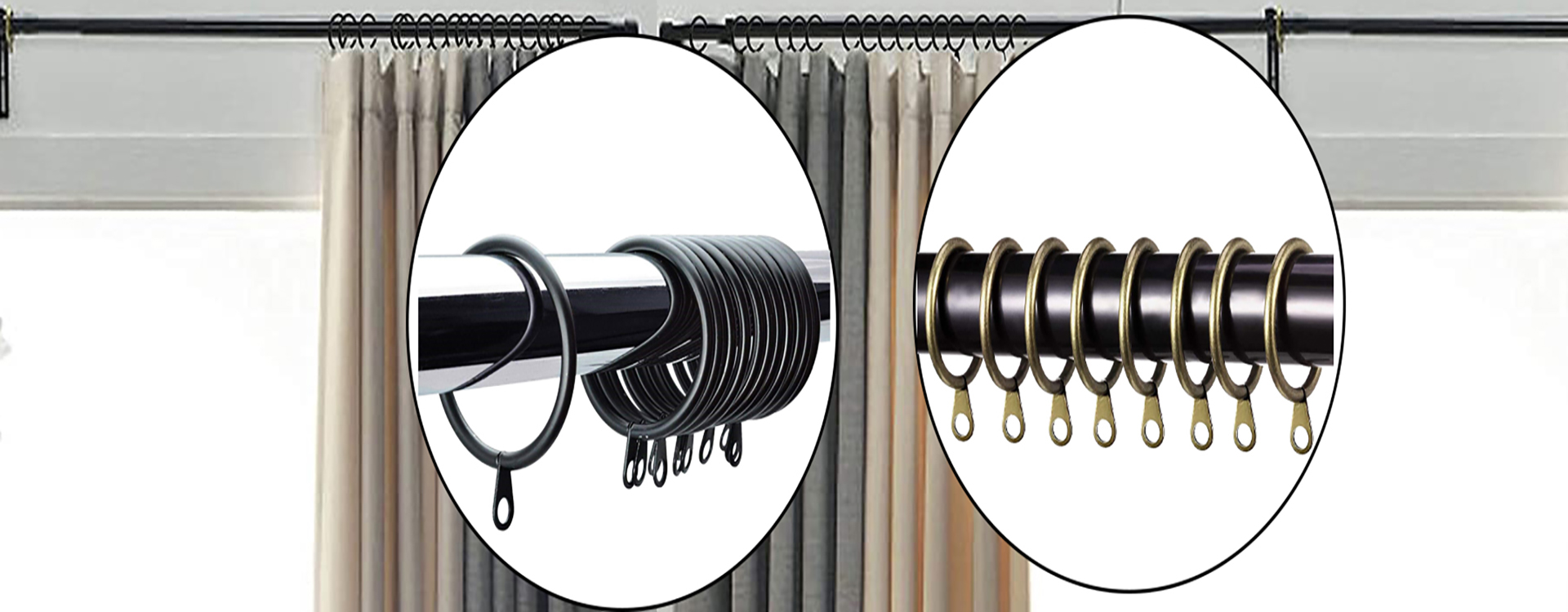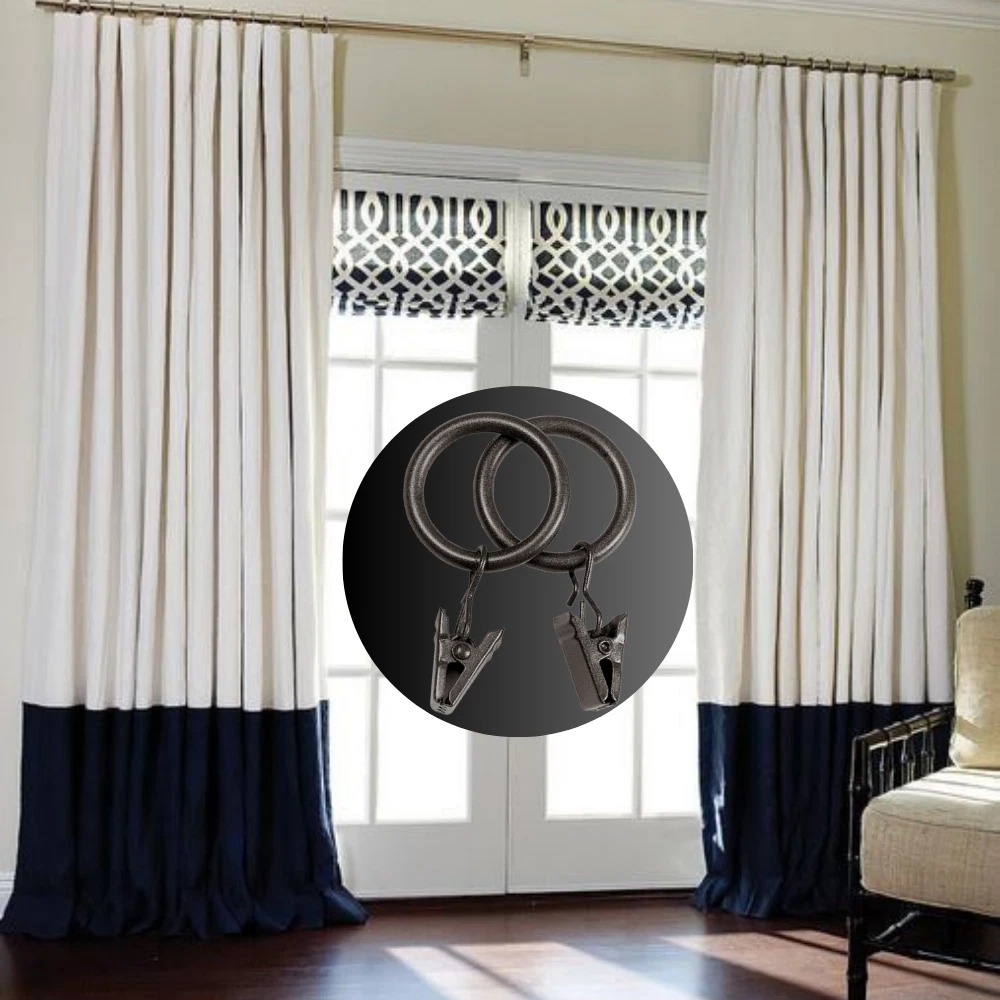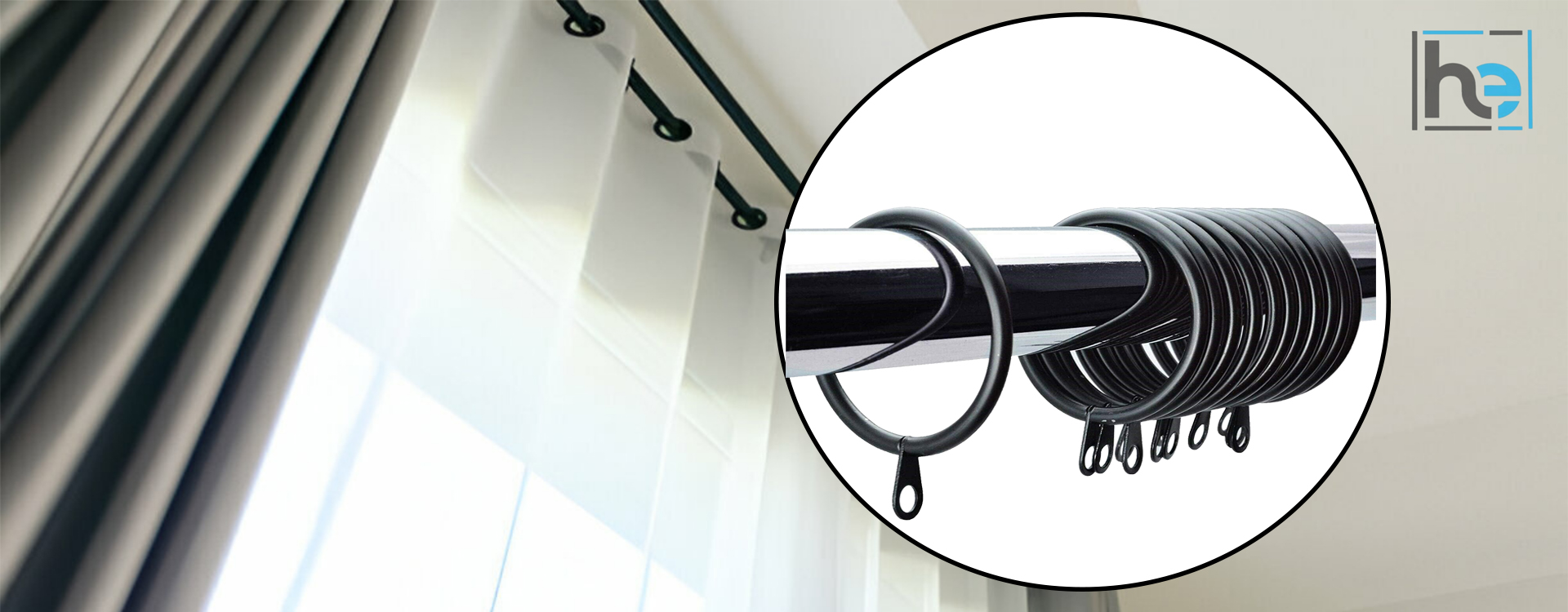 Multi Pack Size 45mm BLACK Colour Strong Metal Curtain Rings Hook with Eyes Rod Pole.